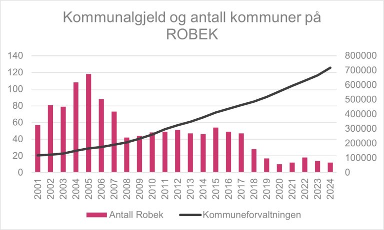 En mulig effekt av flere kommuner på ROBEK er at gjeldsveksten skyves utover i tid. Det betyr imidlertid ikke at den stoppes, men snarere at investeringer og låneopptak utsettes. Basert på historiske tall fra 2001 til i dag, forventes fortsatt en gjeldsvekst på mellom 5-7 % årlig.